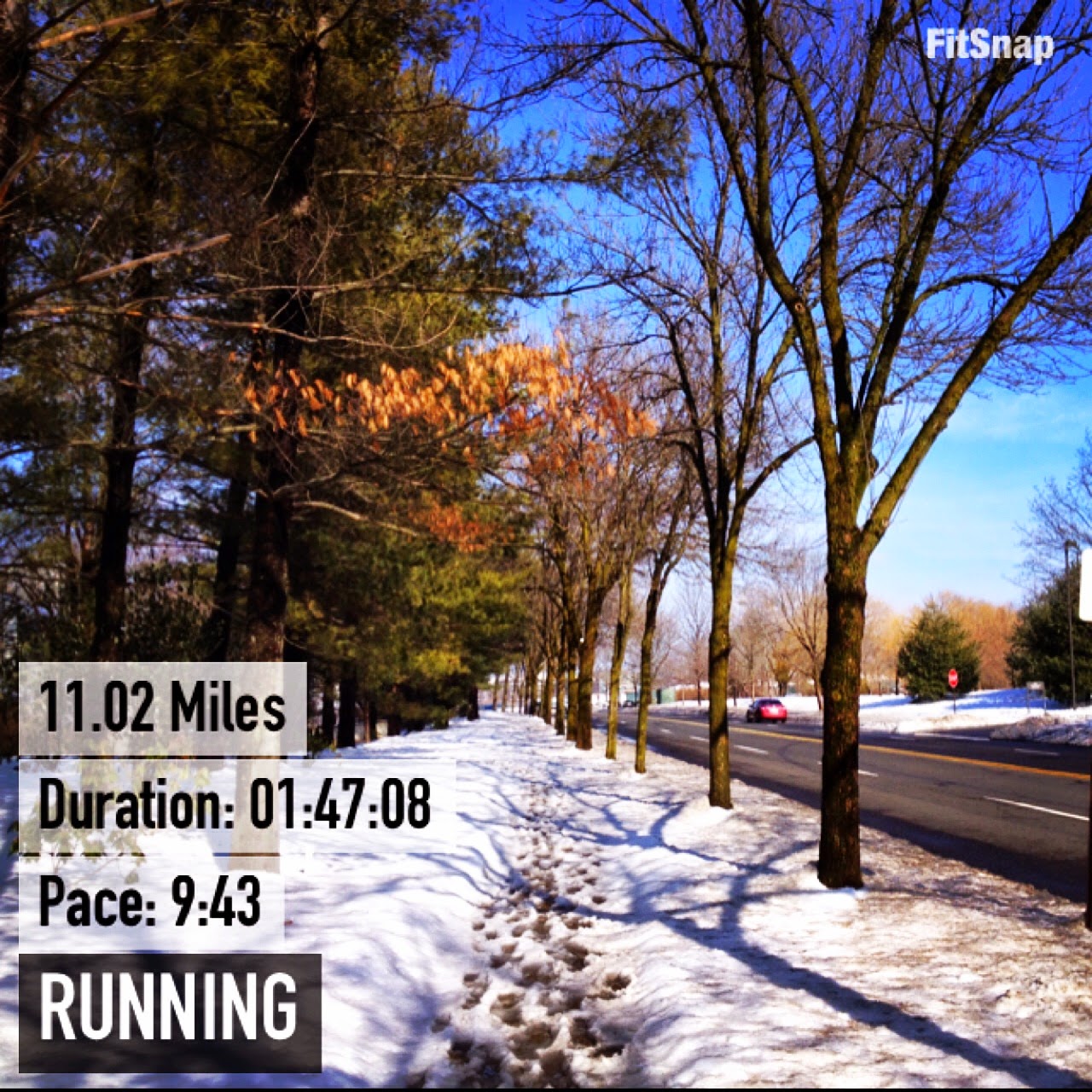 Sunday 2/22 - 11 mile long run late in the afternoon. I actually struggled on this run, not sure if it was because I'm not used to running so late in the afternoon but I was pretty tired early on. I'm just glad I got it done.